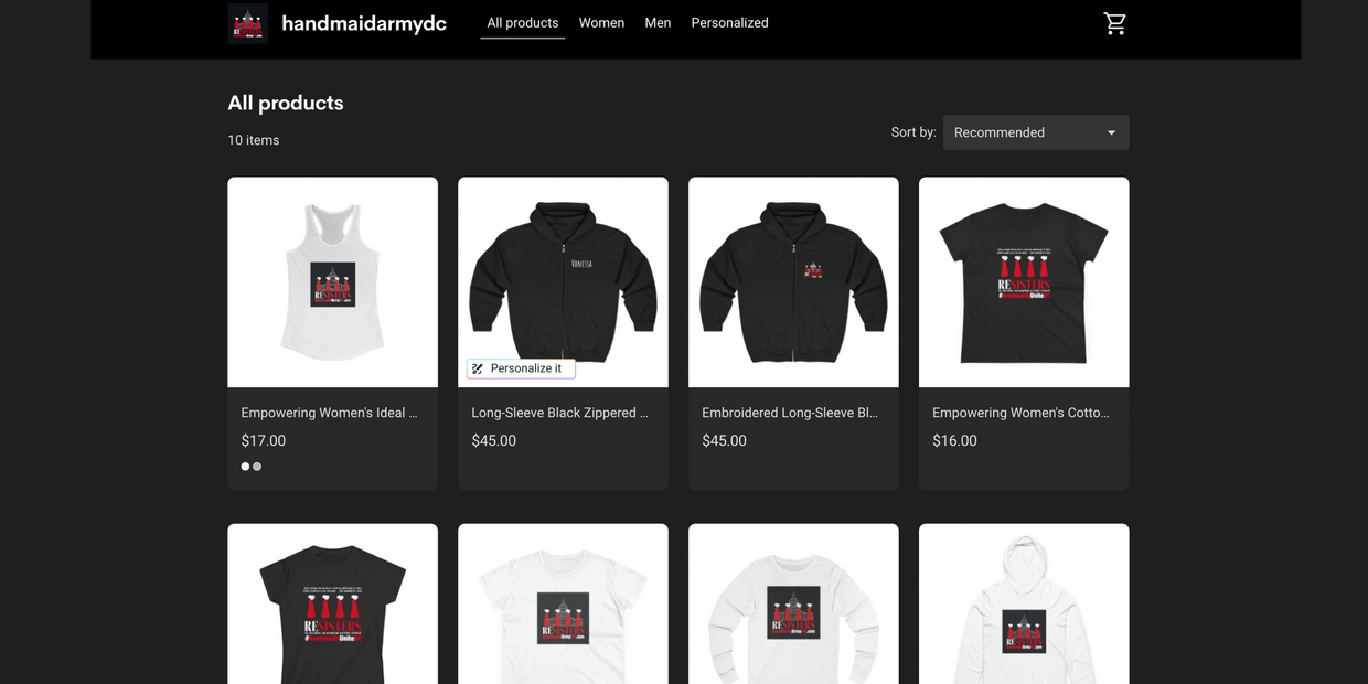 When you purchase an item from our shop, you can feel good about knowing that proceeds from all of the sales in our shop help support the HandmaidArmyDC! You can wear your values proudly AND fashionably, while helping us spread our message! More items will be added soon, so please check back often! Stand in solidarity & unity with your resister sisters in DC, even when you're not in costume- get your HMADC gear TODAY!